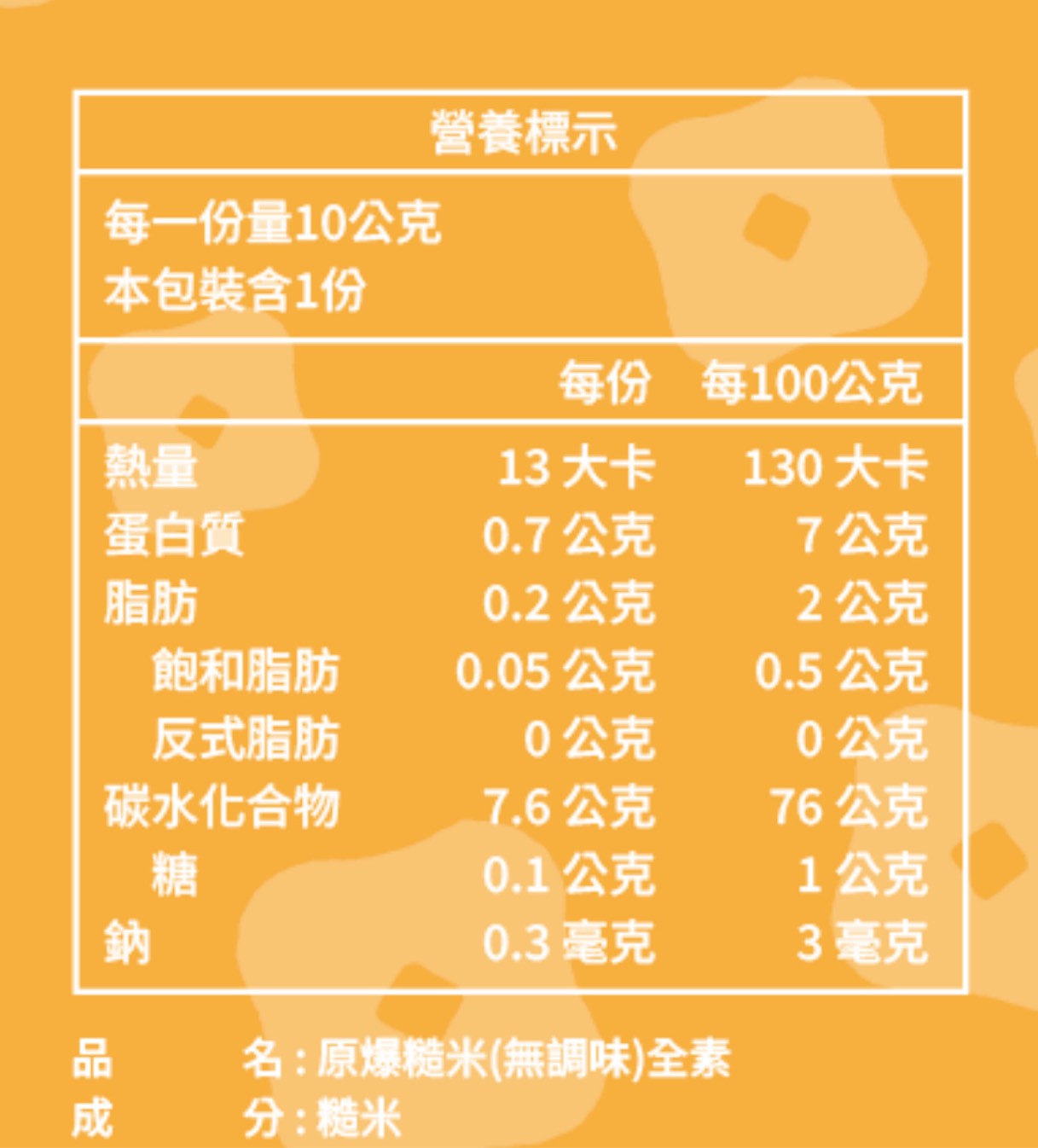 • 每10公克膳食纖維:0.3 公克