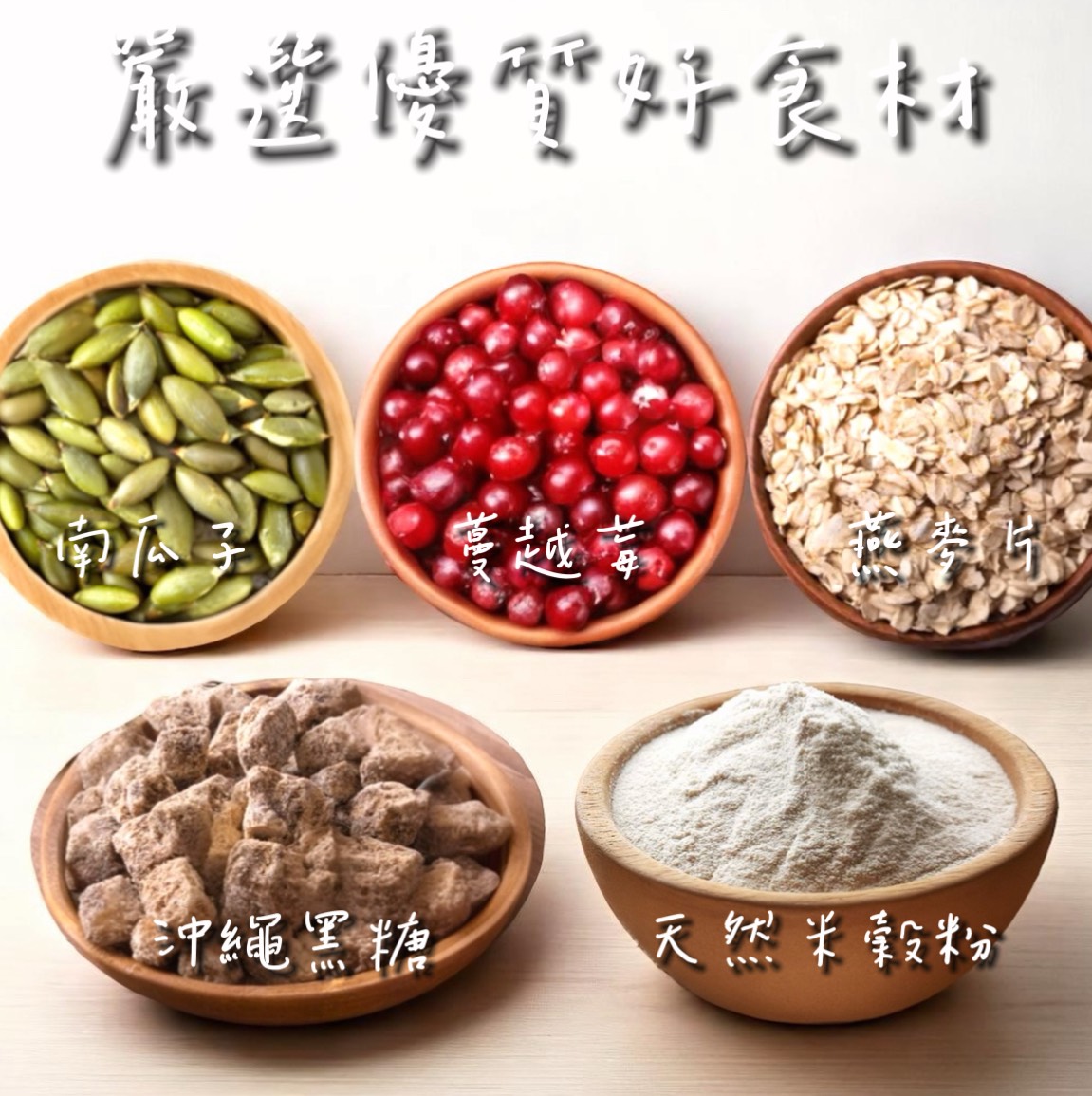 成分:燕麥、沖繩黑糖、米穀粉、牛奶、南瓜子、蔓越莓、義大利橄欖油、海鹽